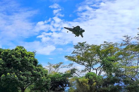 霧の中 見え隠れしながらアクロバティック飛行 | |